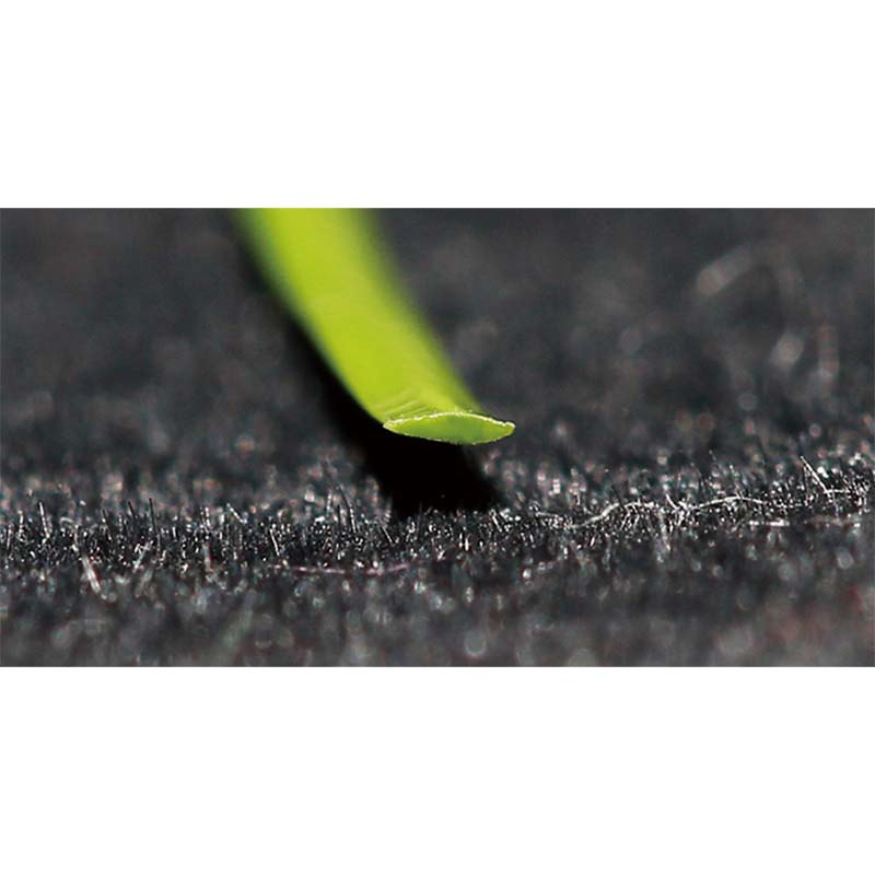 Karatteristika waħda pendenti tal-ħaxix artifiċjali kummerċjali tinsab fix-xafra tad-djamant tagħha. Il-forma speċjali tad-djamant tagħti lill-ħaxix sintetiku sensazzjoni ratba, kapaċità kontra l-brix u korp wieqfa. Jirrealizza tnaqqis effettiv fil-brix tal-ġilda u l-ħruq lill-plejers. Barra minn hekk, proprjetajiet bħal anti-UV u anti-aging jikkontribwixxu għall-lonġevità. Reputazzjoni tajba hija stabbilita kemm fiċ-Ċina kif ukoll f'pajjiżi barranin.